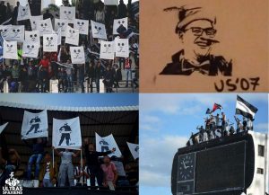 En plus de leurs étendards politisés révélant leur engagement, l’univers graphique des US07 est singulier, diversifié, et ne cesse d’évoluer. Les ultras sfaxiens redéfinissent l’underground en intégrant un panel diversifié et cosmopolite, mêlant des références occidentales et tunisiennes.
