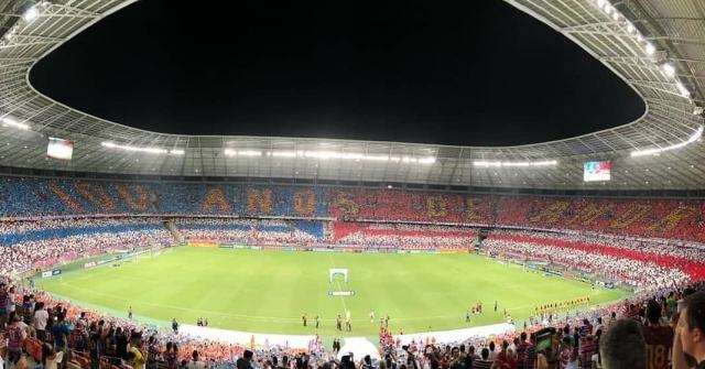 Gros derby en D2 brésilienne plus de 57000 spectateurs. 112 volontaires de la cellule spécialisée Leões do Mosaico ont mis 8 heures à préparer la chorégraphie : « 100 ans d’amour ». Un tifo au coût important financé par les dons des supporters et un petit coup de main du club qui a mis la main à la poche. Mais le travail reste à 100% effectué par les torcedores.