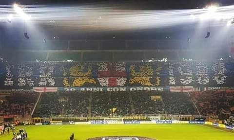 Autre anniversaire, celui des Irriducibili de l’Inter Milan. Voilà 30 ans que ce groupe ultra anime la Curva Nord. 30 piges, fêtées par un tifo à feuilles, occupant toute la largeur de la Curva Nord, aux couleurs du club et reproduisant l’inscription « IRR 1988 » acronyme désignant les Irriducibili et leur date de création. « 30 années avec l’honneur », indique la banderole sous le tifo. Portés par la Curva Nord, les Interisti s’imposent et conservent leur 3e place de Serie A.
