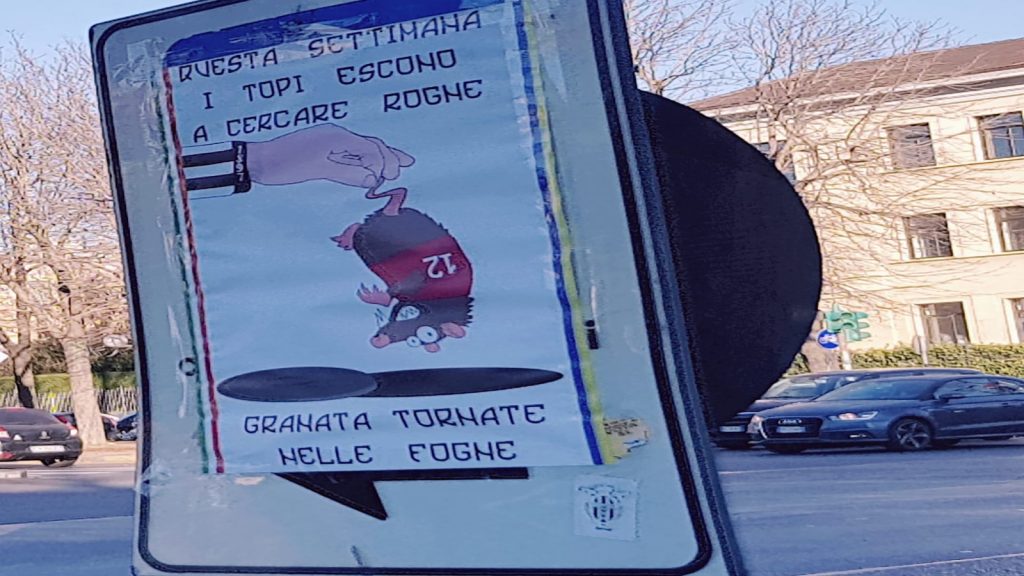 À noter que cette rencontre a encore été l’occasion, pour les pouvoirs publics italiens, de faire tourner la machine répressive. Sept Daspo (interdictions de stade) d’une durée d’un an ont été prononcés avant le derby à l’encontre de supporters bianconeri, pour avoir diffusé des affiches injurieuses qui constituent, selon le chef de la police de Turin, une « incitation à la violence » (voir image). À ces sanctions s’ajouteront des interdictions de stade prononcées à l’encontre de huit supporters français de la Juve, membres des Drughi Francesi. Selon la presse italienne, ils avaient été interpellés peu de temps avant le début de la rencontre pour avoir fait usage de fumigènes, de fusées et de bombes artisanales. Sept seront condamnés à 3 ans d’interdiction de stade, le huitième à 4 ans.