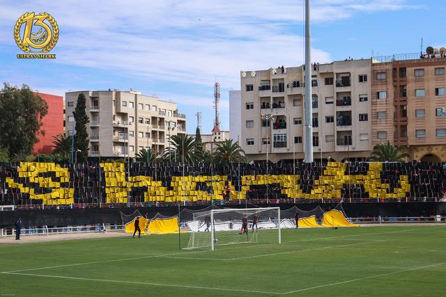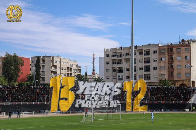 On commence de suite avec un très haut niveau dans les tribunes marocaines de l’OC Safi. Les Ultras Shark célèbrent leurs 13 ans sur une teinte sombre, et omniprésente : l’oppression subie par les ultras. Leurs couleurs habituelles laissent place au noir, majoritaire, notamment lorsque le nom du groupe inscrit en jaune disparaît pour laisser place à une tribune marquante entièrement recouverte de feuilles noires. Dans un second temps, le voile tendu présente un jeu de mot entre les 13 ans de leur anniversaire et le numéro 12, connu pour représenter les supporters : en somme, l’anniversaire des 13 ans sonne aussi 13 ans de galère et de lutte pour les supporters.